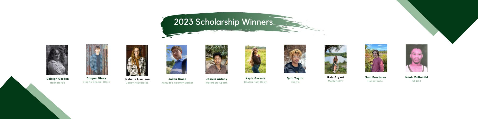 The Vermont Retail & Grocers association is proud to offer scholarships to students affiliated with member businesses. Through our scholarship program we provide financial assistance to eligible students entering their first year at an accredited two or four-year school in the US. The VRGA Scholarship Fund is supported solely by our members. Thank you to our members for awarding Vermont students each year who embark on a path toward higher education. Our 2025 Vermont Retail & Grocers Association Scholarship Program awardees are:
